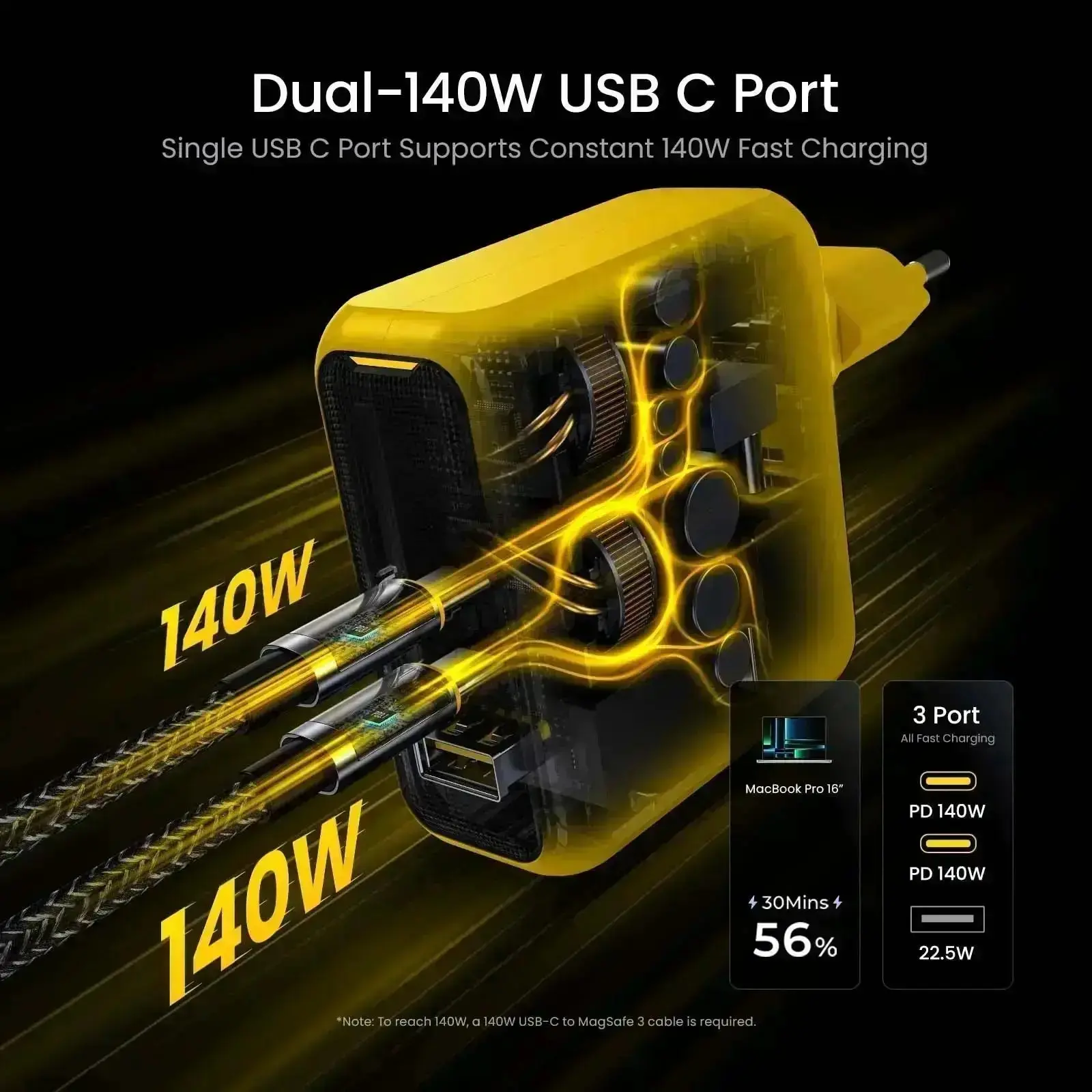 - 3-in-1 Multiport Charging: Two USB C ports and one USB-A port power two 14-inch laptops and a phone simultaneously, fast enough for a multi-device tech user, and it's a charger that charges all your devices. In addition, if you desire to get a tidy desktop, this 140W multiport charger is also a great option.