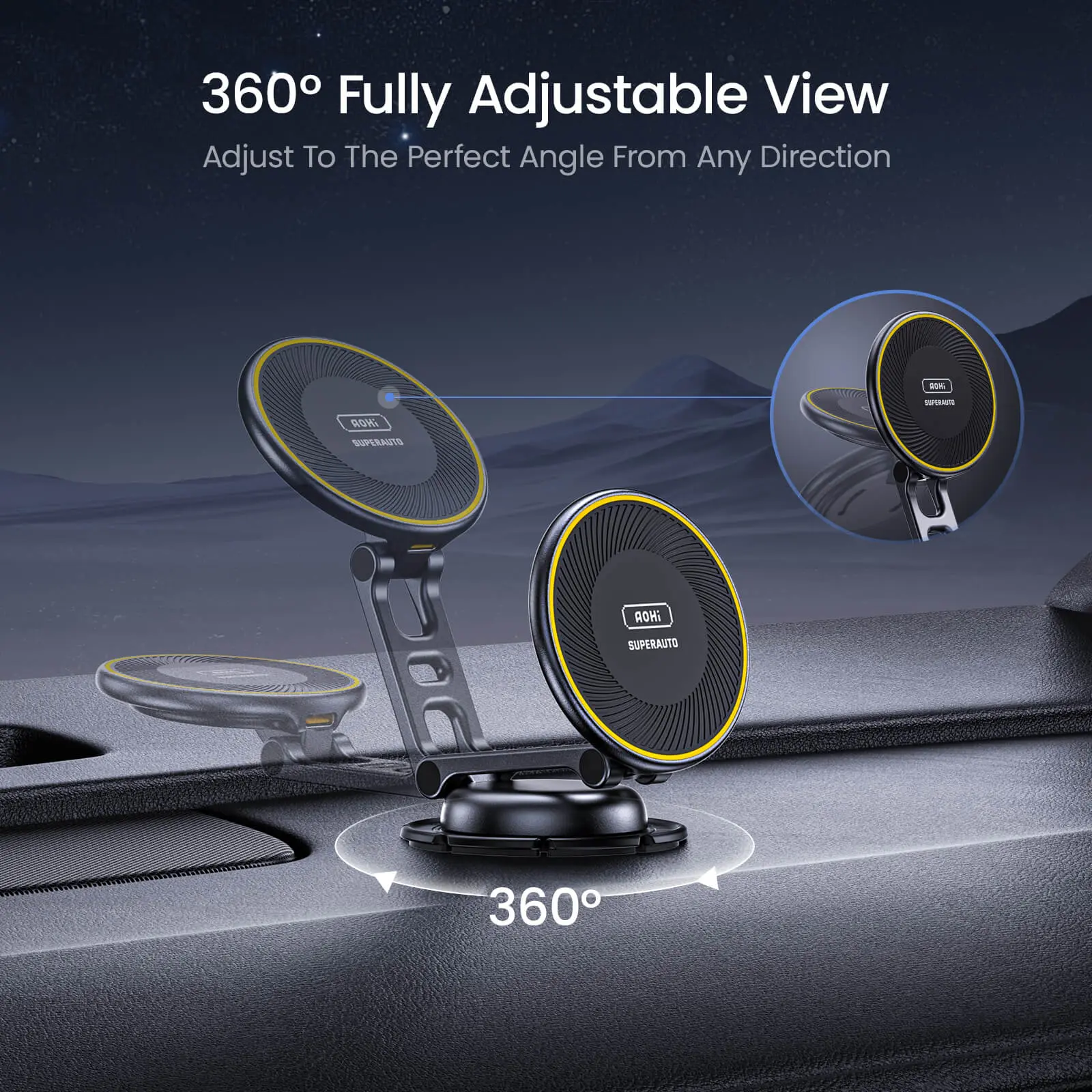 AOHI SUPERAUTO Foldable 360° Magnetic Wireless Car Charger with 3.3FT C-C Cable