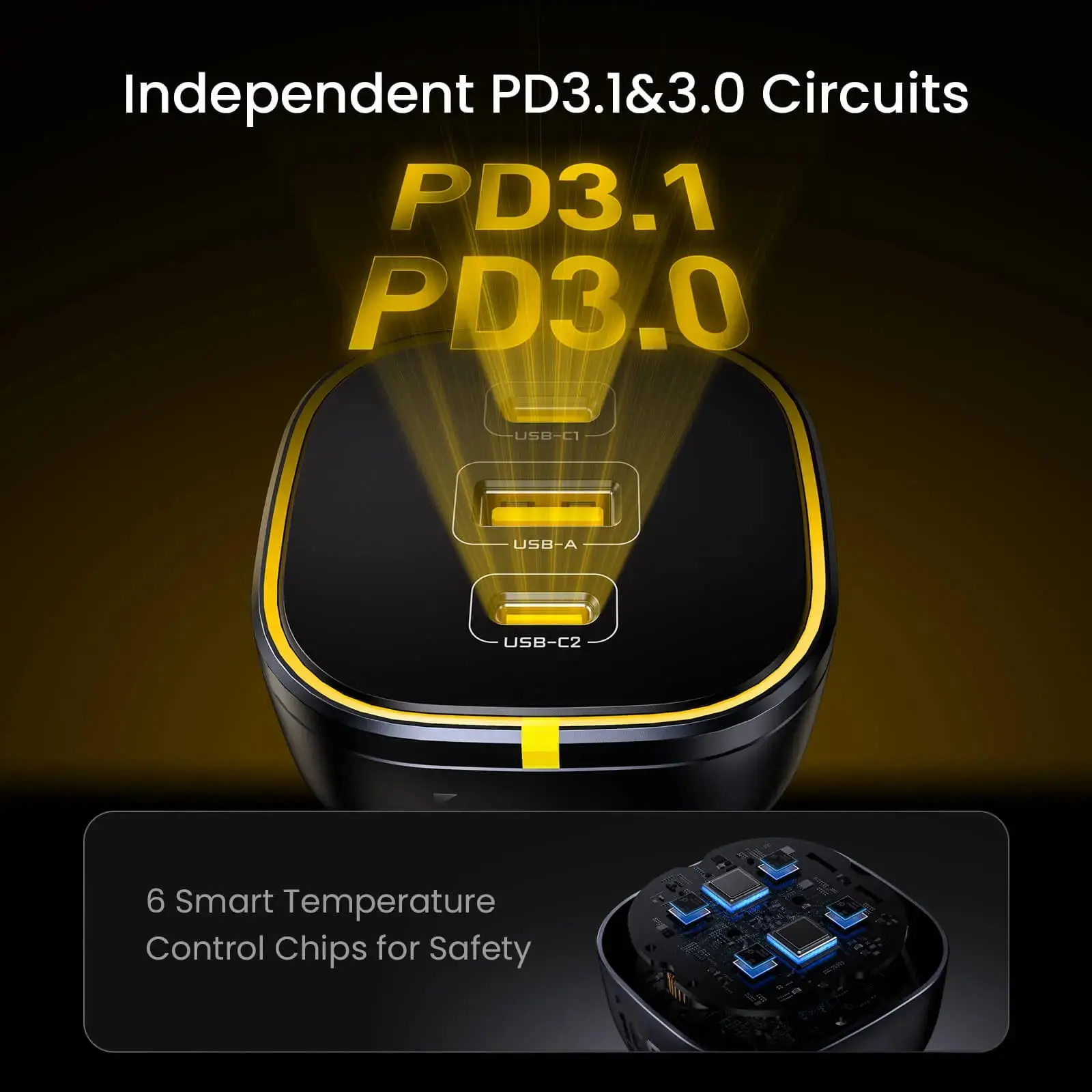 - True PD3.1 140W Full-Power Charging: With genuine PD3.1 technology, it delivers up to 140W output on a single port, rapidly charging a MacBook Pro 16" from 0% to 56% in just 30 minutes, maintaining a stable and continuous power supply even with plug-in and plug-out actions.
